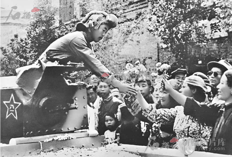 一张记录各族群众夹道欢迎、市民向装甲车上战士献花的照片,成为永恒的历史记忆。当日的《新疆日报》还发表了社论《欢迎人民解放军》,文中写道:“这种自发的不可遏止的欢欣,说明了真正为人民谋利益、求解放的军队必然会在人民的心底里得到无可动摇的信赖和崇敬。”