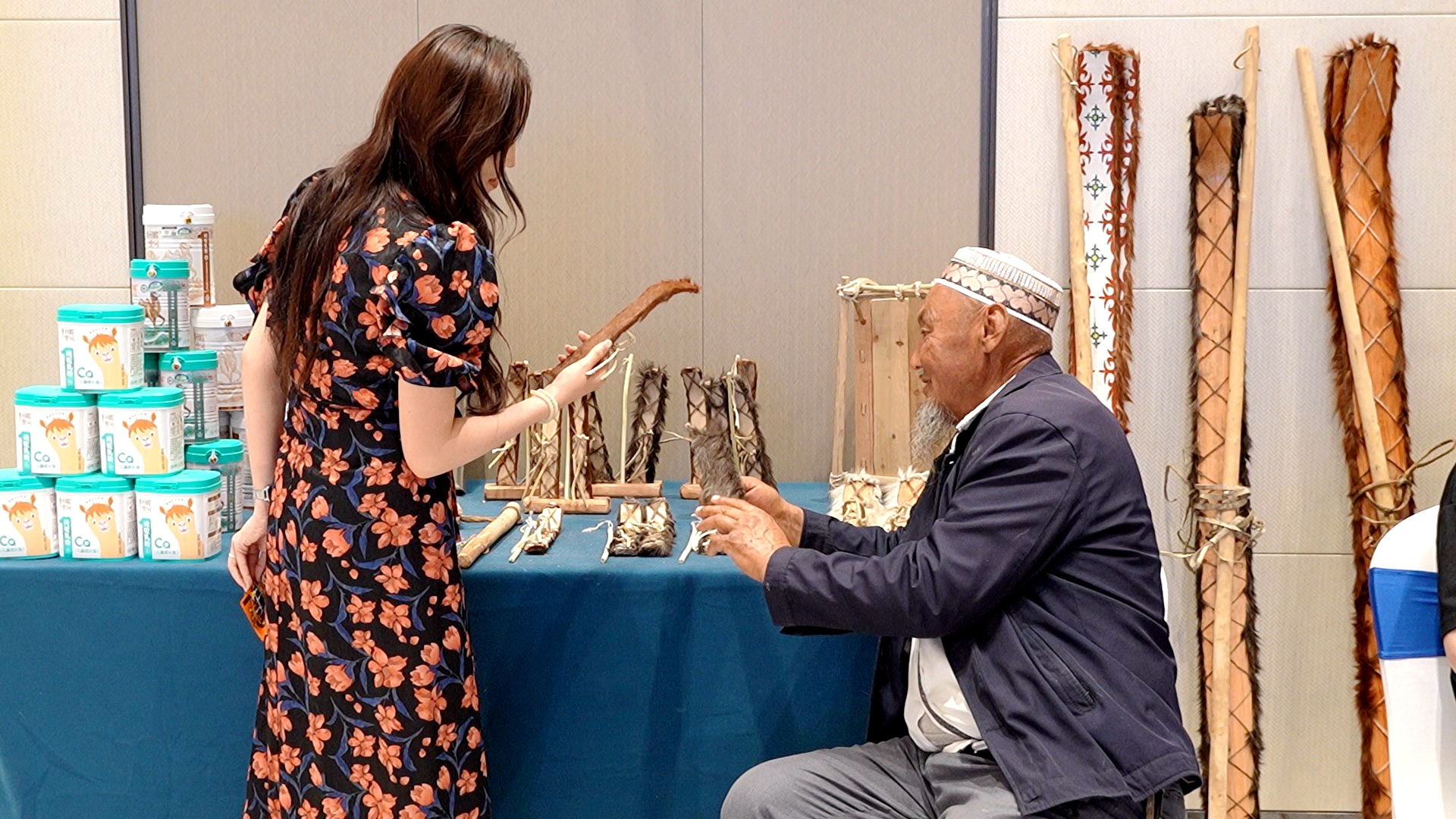 阿勒泰市汗德尕特蒙古族乡党委委员、宣传委员殷威杰说:“此次活动为我们提供了绝佳的宣传平台,能够直接面向潜在客户展示产品和服务。我们希望通过这样的机会,将阿勒泰优质的牛羊肉、古老毛皮滑雪板等特色好物推广到更多地方,让更多人了解并喜爱我们汗德尕特的独特文旅资源。”
