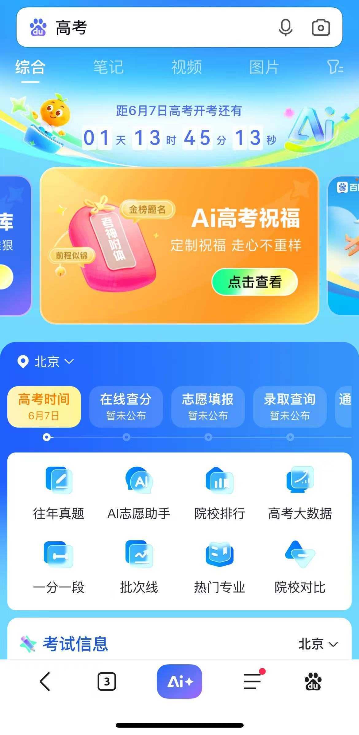 作为考生和家长获取高考信息的主要平台,百度搜索产品相关负责人表示,百度是用户获取信息的重要入口,利用ai和大数据为考生提供权威的服务和准确的信息,是百度应该承担的社会责任,也是百度高考服务应该发挥的产品价值。