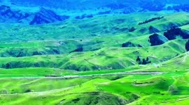 a a. a-6月17日,记者来到奇台江布拉克,登上观景台俯瞰,万亩麦田层层叠叠,如绿色的波浪在广袤的大地上翻涌,万亩麦田与远处巍峨的雪山、湛蓝的天空相映成趣。成群的马儿、羊儿悠然自得地啃食青草,画面美得像童话。别犹豫,快来奔赴这片梦幻之地,在绿意盎然中,留下一段难忘的夏日记忆。