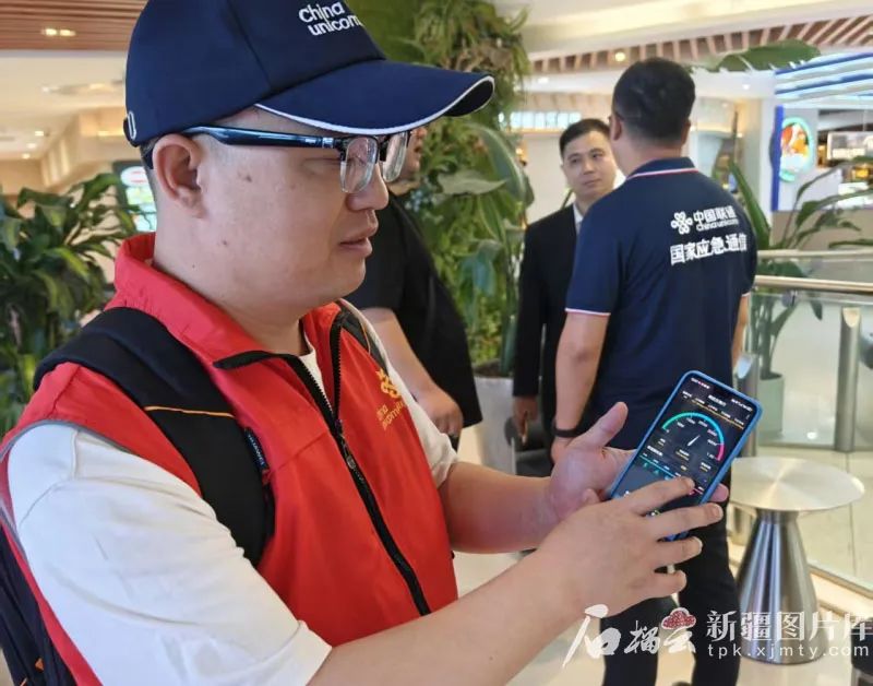 5月15日,乌鲁木齐市时代广场中国联通乌鲁木齐市分公司工作人员通过手机信号检测app检测网速。石榴云/新疆日报记者 范琼燕摄