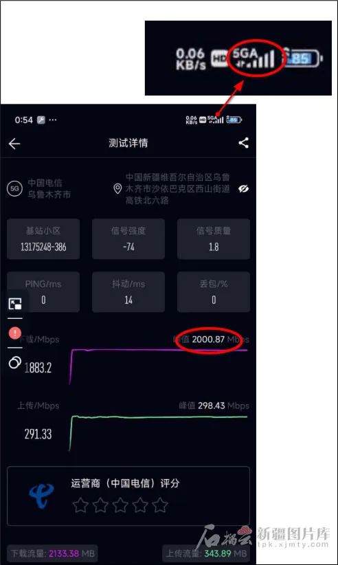 支持显示5g-a标识的手机用网络测试app进行测试的数据。手机截图
