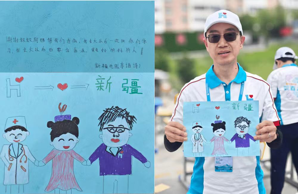 当医疗团队即将离开时,8岁的小女孩李语诗拿出自己的画,送给为她看病的儿科专家崔玉涛,画中有崔玉涛、她喜欢的韩红阿姨和她自己。背面还写着“谢谢叔叔阿姨帮我们看病,我长大以后一定向你们学习,我长大以后也要当医生,救好多的人。”