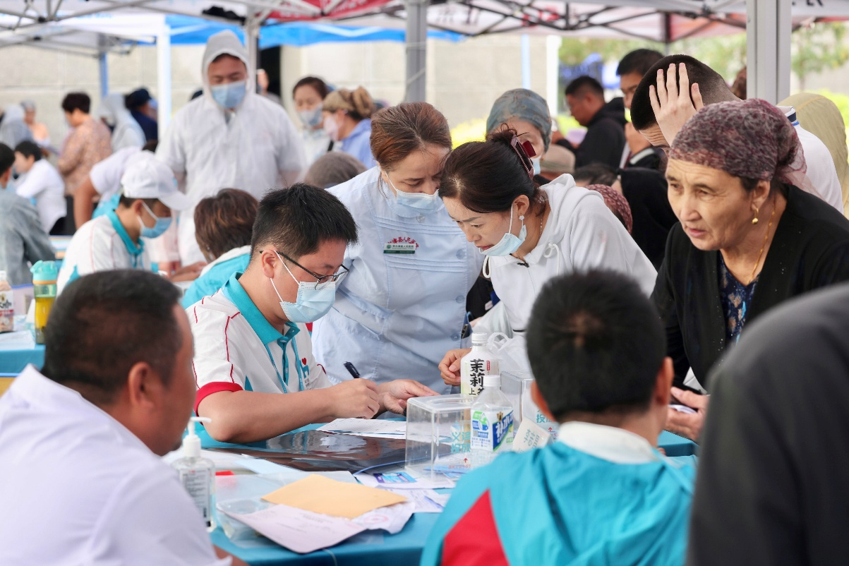 6月15日,2025“韩红爱心·百人援疆”大型医疗援助公益行动第四站来到塔城地区托里县。