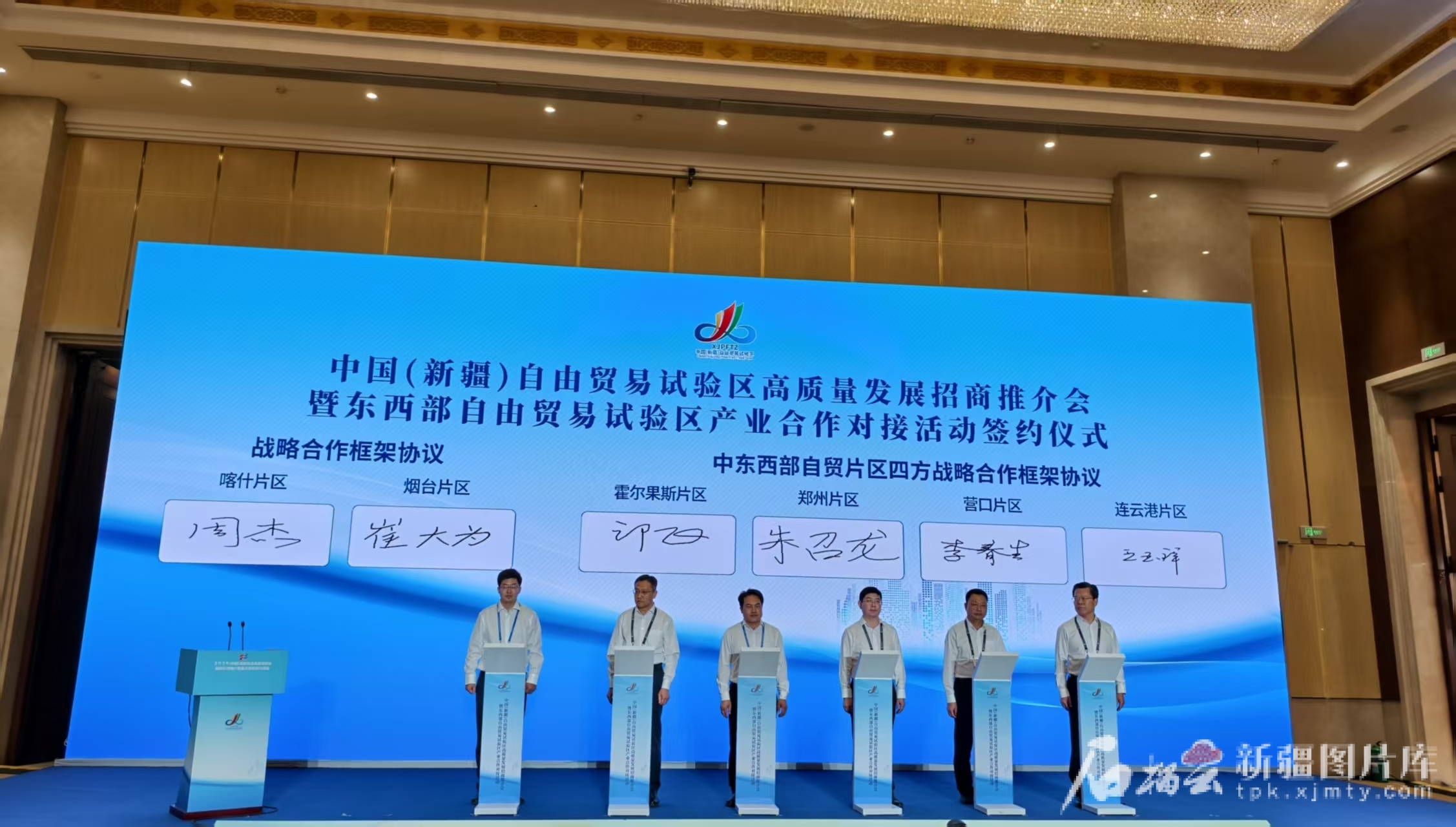 活动现场,新疆自贸试验区工作办公室与浙江自贸试验区工作办公室签署合作协议,乌鲁木齐片区与浙江金义片区、河南郑州片区以及北京市顺义区商务局牵手,喀什片区与山东烟台片区结盟,霍尔果斯片区与河南郑州片区、辽宁营口片区、江苏连云港片区达成四方战略合作,东西部自贸试验区协同发展网络进一步织密。