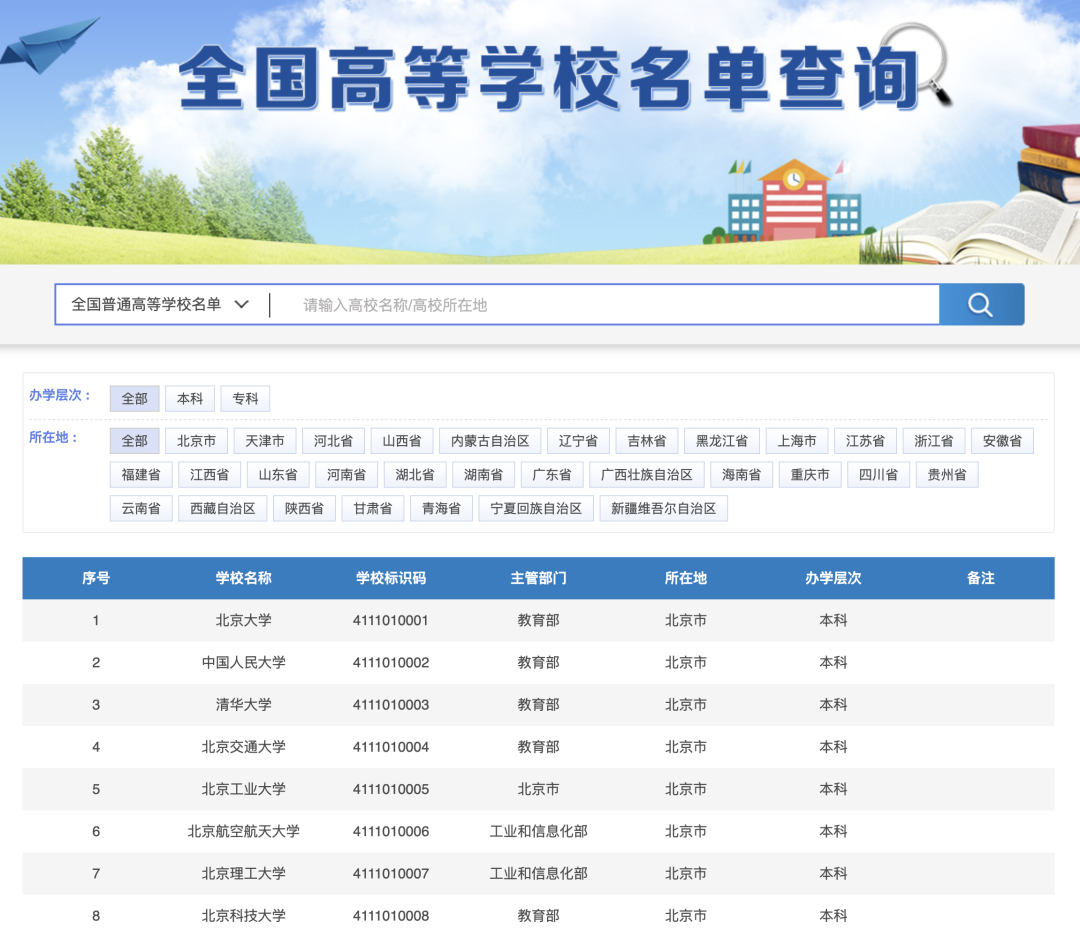 教育部发布全国高等学校名单-尊龙凯时国际娱乐