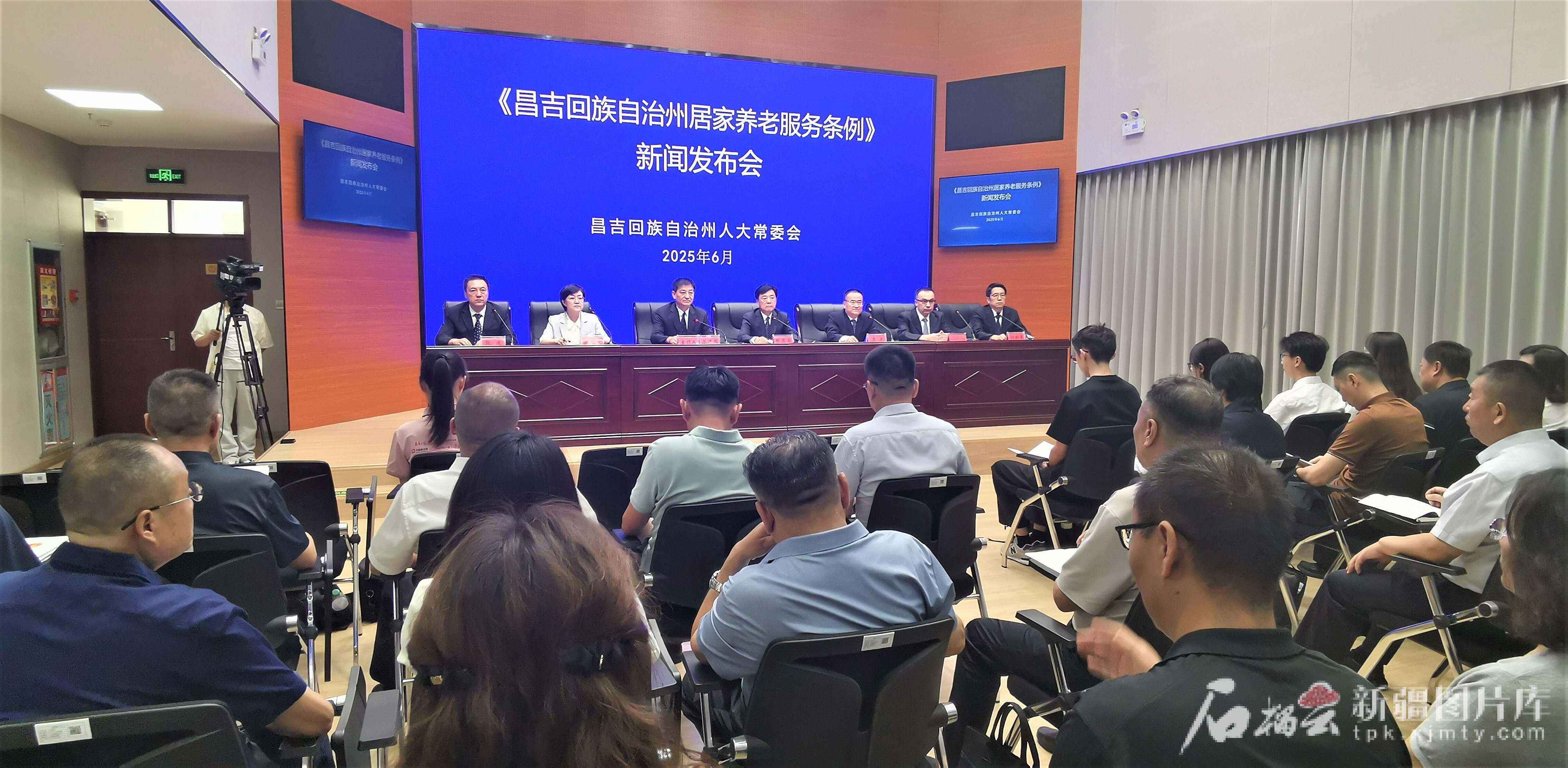 6月30日,昌吉回族自治州人大常委会举行新闻发布会,公布《昌吉回族自治州居家养老服务条例》。图为新闻发布会现场。石榴云/新疆日报记者 盖有军摄