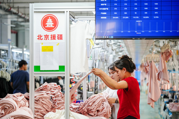 去年8月,北京市援疆和田指挥部促成这家企业在和田落地,构建起集互联网平台运营、高品质时尚服装加工、织布印染为一体的产业生态,开创新疆纺织服装全产业链发展新格局。