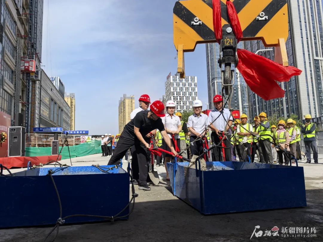 7月11日11时许,随着最后一铲混凝土浇筑完成,新疆第一高楼商业综合体成功封顶。