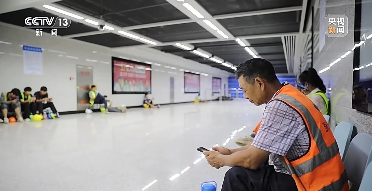 本周五的上午11点,记者在武汉的惠济二路地铁站看到,有工人正走进地铁乘凉。再走近一点发现,这里已有不少纳凉的工人和居民,他们有的坐在凳子上,有的干脆席地而坐,有的玩手机,有的打起了盹儿,享受这清凉一刻。