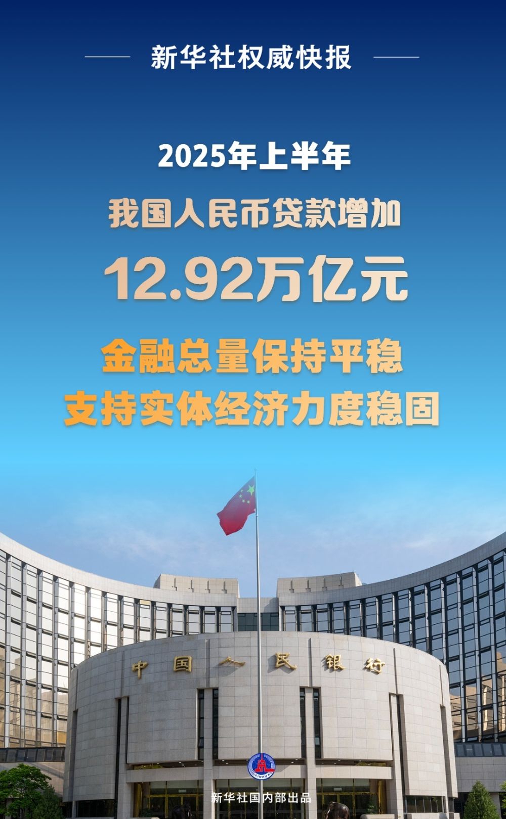 2025年上半年我国人民币贷款增加12.92万亿元