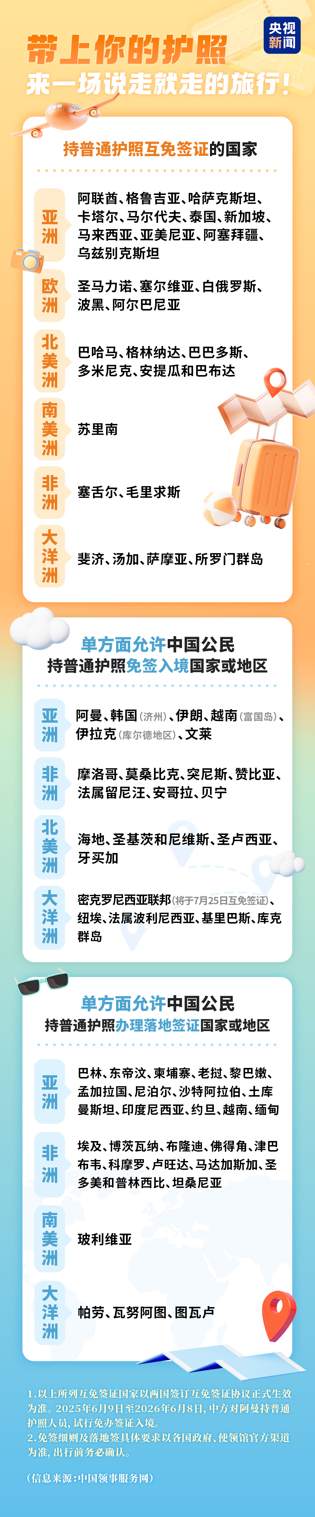 带上护照,还有哪些国家可以“说走就走”?一图了解↓