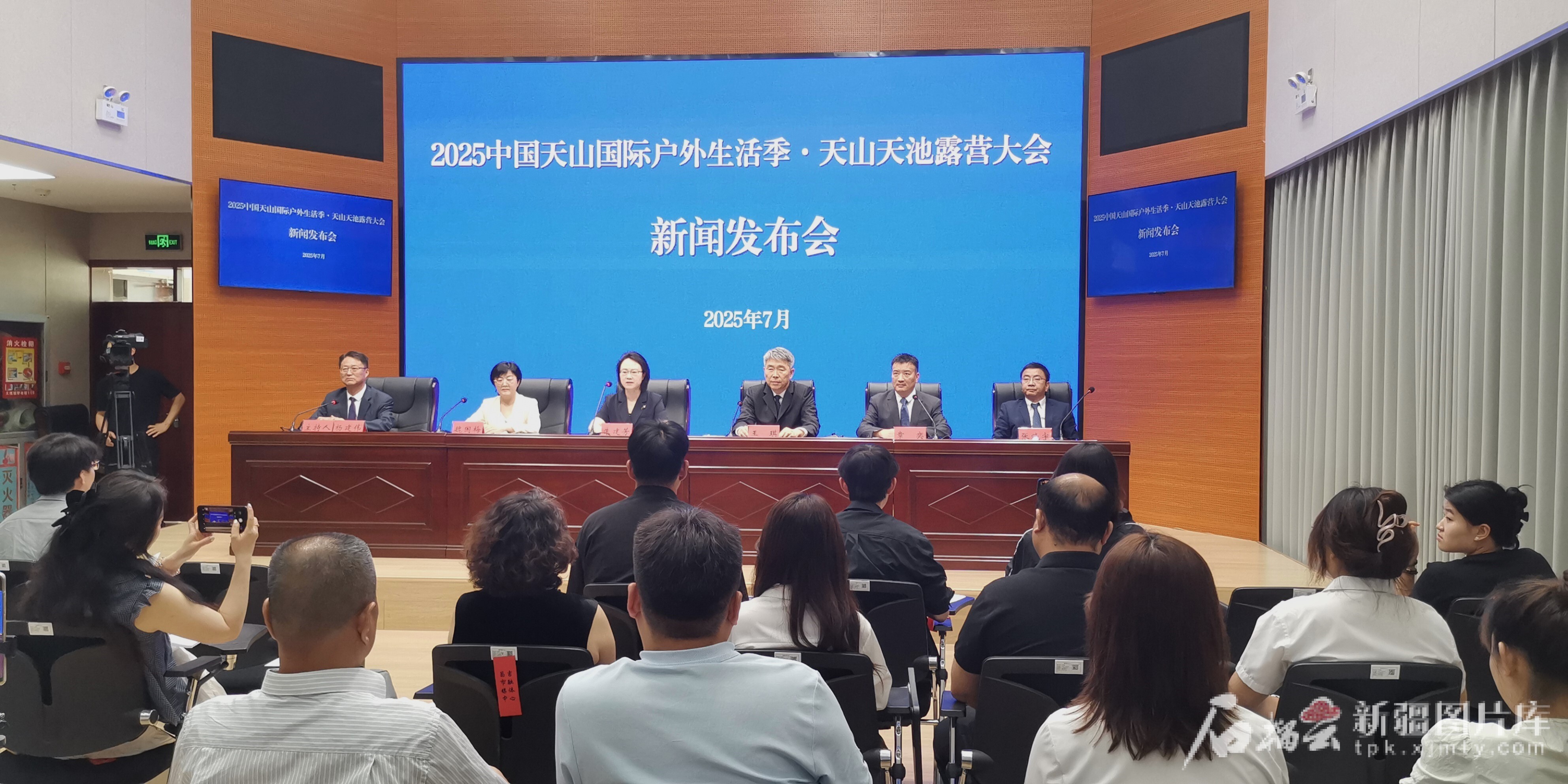 7月16日,“2025中国天山国际户外生活季·天山天池露营大会”新闻发布会举行。图为发布会现场。常谊谊摄
