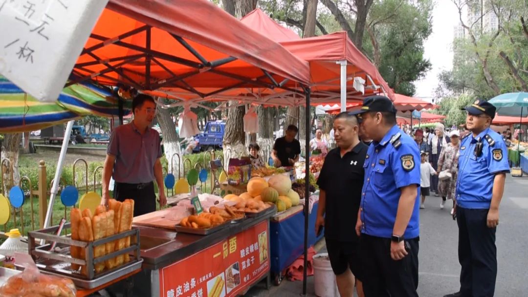 昌吉市城市管理局综合执法大队宁边路中队副中队长周小舟说:“目前,21号小区便民疏导点位大约有流动摊点120个。我们按照错时、延时管理的方式,每天安排4组人规范商户摆放行为,并要求大家在工作中做到服务有温度、管理有精度、执法有准度。”