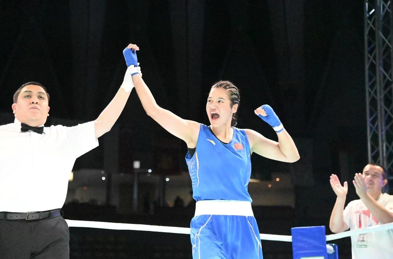 迪娜·沙那提别克曾在2024年参加u19亚青赛并获得银牌,此次是她升入成年组后首次参加亚锦赛。在女子65公斤级比赛中,她首战以3:2险胜哈萨克斯坦选手,随后接连以两个5:0的比分轻松战胜乌兹别克斯坦选手和中国台北选手,最终夺冠。“3场比赛,我的竞技状态越来越好。因为去年亚青赛没能拿到金牌有点不甘心,加上今年面对的都是成年组选手,确实有心理压力。第一场打得比较紧张,通过首轮后就越来越放松了。”迪娜在今年6月已获得第十五届全国运动会决赛资格,随后进入国家队集训备战。她表示,国家队的系统训练和此次亚锦赛的经历,让她对参加成年组比赛增添了更多信心,接下来将全力备战全运会。
