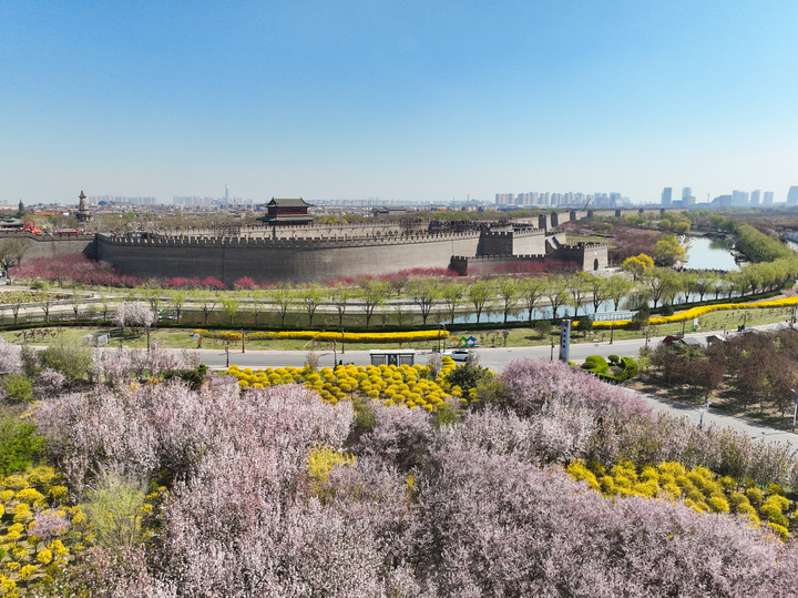 河北省正定古城南城门春色(2025年3月31日摄,无人机照片)。新华社发(梁子栋摄)