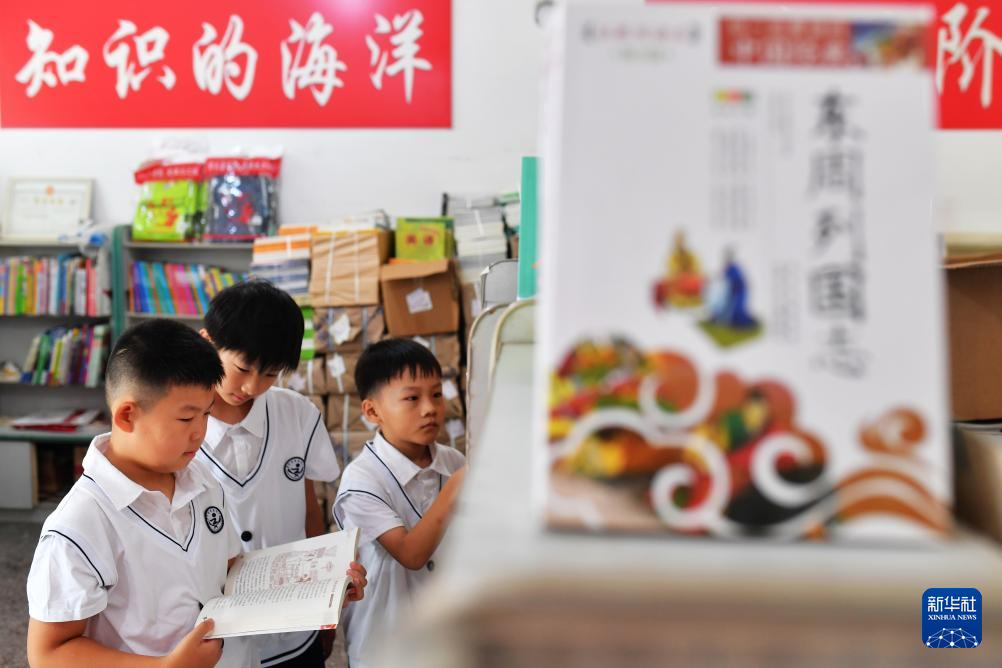 8月25日,山东省青岛市城阳区夏庄小学学生在选购学习辅助书籍。新华社发(王海滨摄)