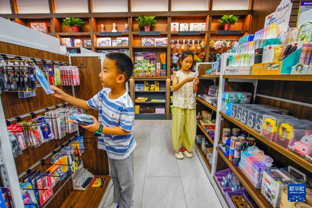 8月25日,河北省遵化市文化路街道的小朋友在文具商店选购学习用品。新华社发(刘满仓摄)
