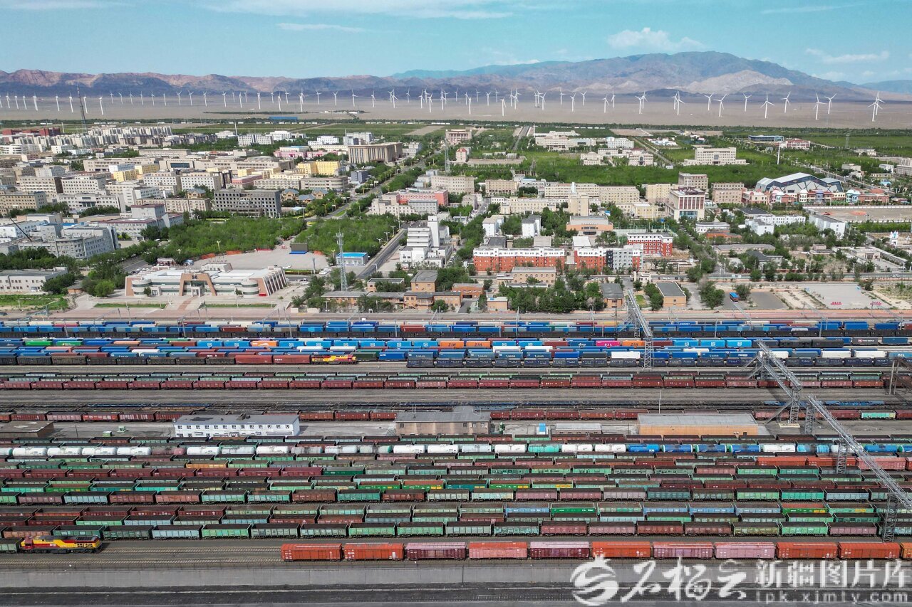 6月24日,阿拉山口站一列列中欧(中亚)班列整装待发。石榴云/新疆日报记者 蔡增乐摄