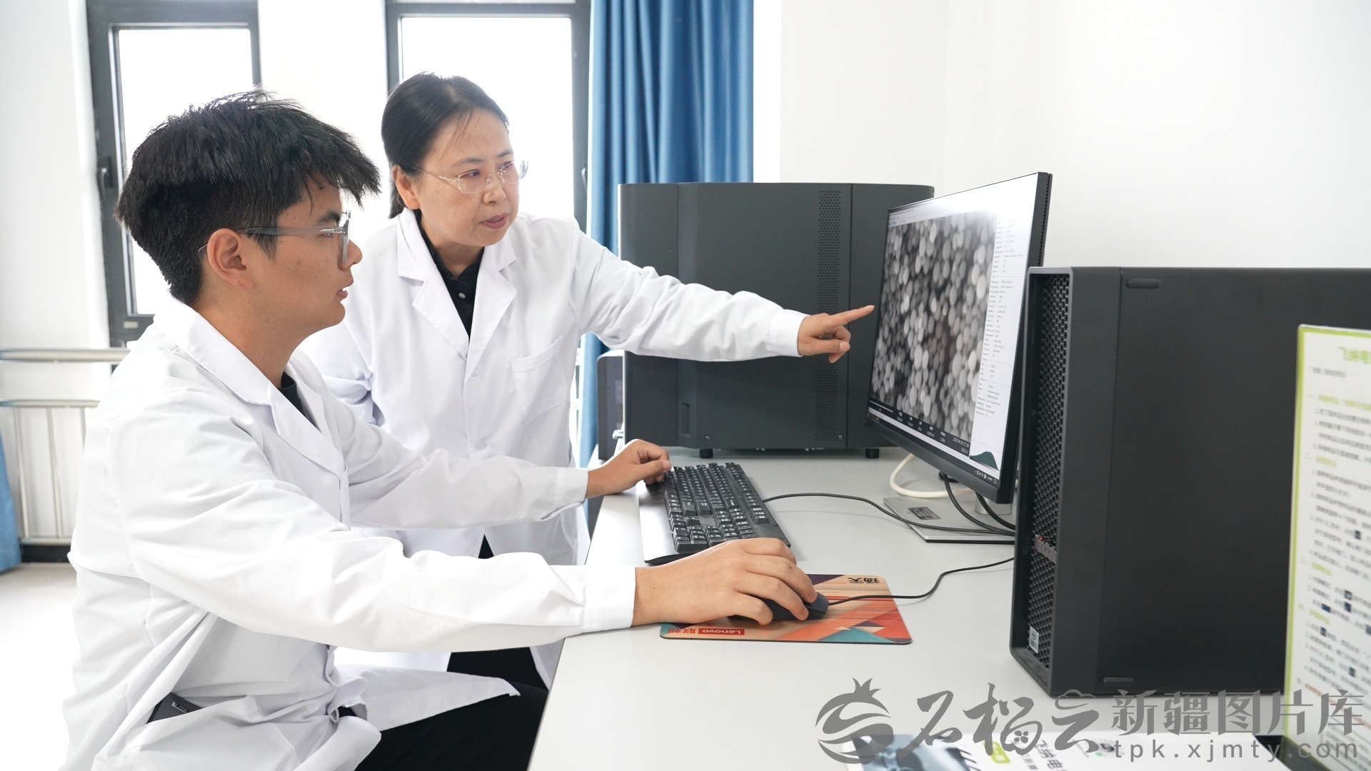 胡雪敏指导学生做科研。图片由新疆科技学院提供