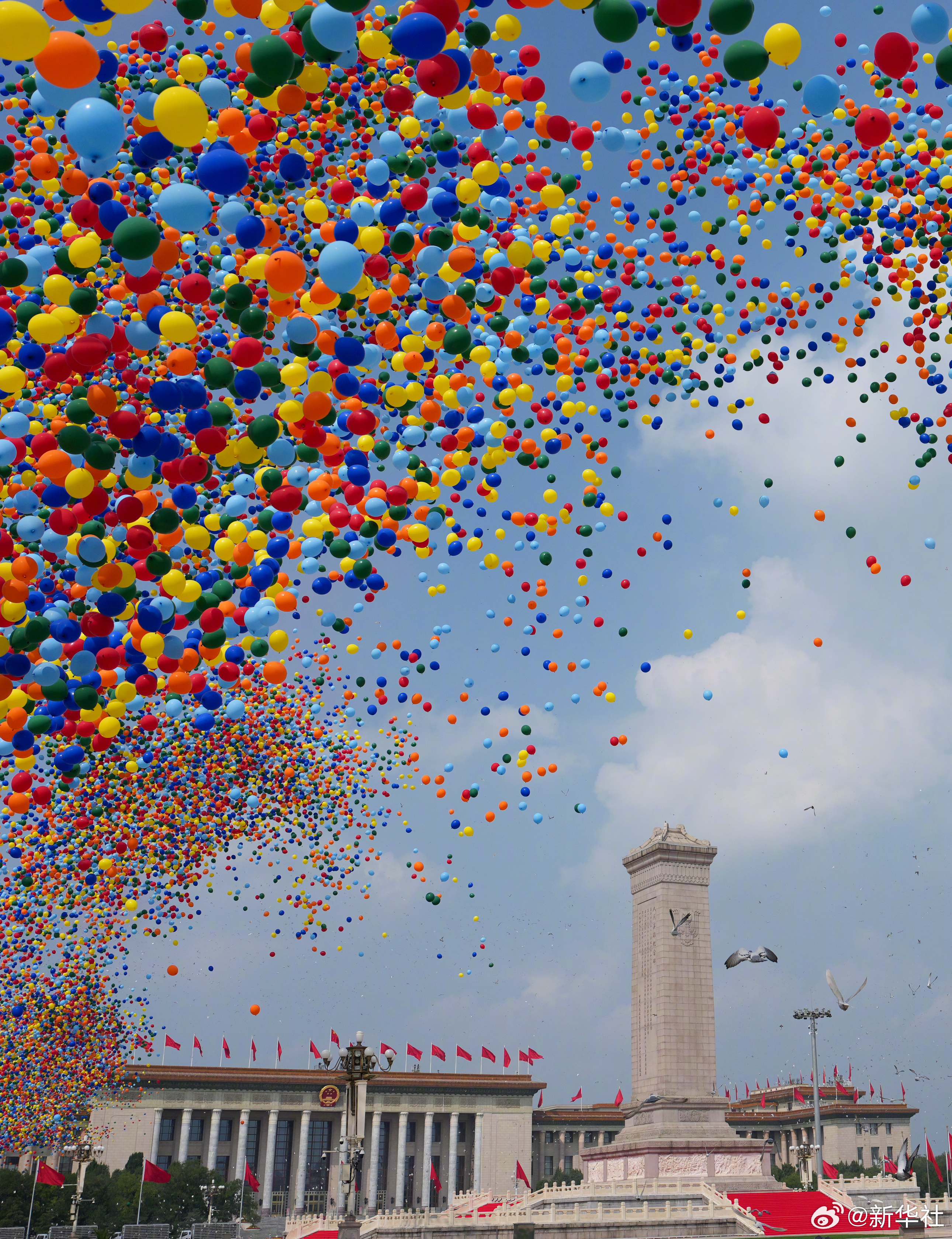 a a. a-和平鸽展翅高飞,彩色气球腾空而起!回望峥嵘的血火岁月,让我们以山河为证、以日月为铭,共同见证,英雄的中国人民永远不屈,和平的阳光永远灿烂!让我们为胜利喝彩为祖国点赞!(记者:张宏祥、费茂华、江文耀、周荻潇、牟宇)