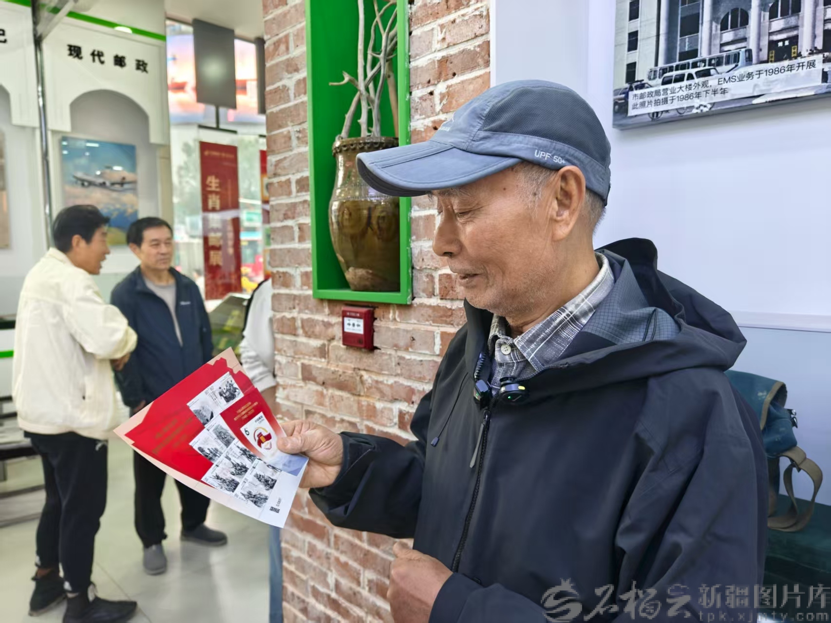乌鲁木齐市退休教师陆孟瞻购买完纪念邮票,仍有集邮爱好者在排队。天山网-新疆日报记者 范琼燕摄