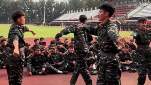 开幕式上,广西中医药大学第一附属医院代表队上台喊出参赛口号。石榴云/新疆日报记者 于江艳摄