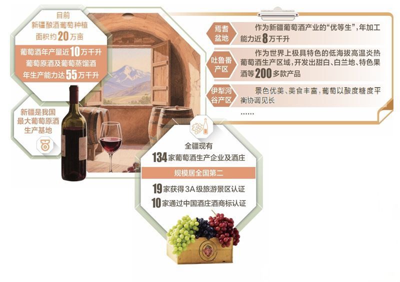 数据显示,全疆现有134家葡萄酒生产企业及酒庄,规模居全国第二,19家获得3a级旅游景区认证,10家通过中国酒庄酒商标认证,一条从种植到酿造、从品质到品牌的全产业链条已初具规模。