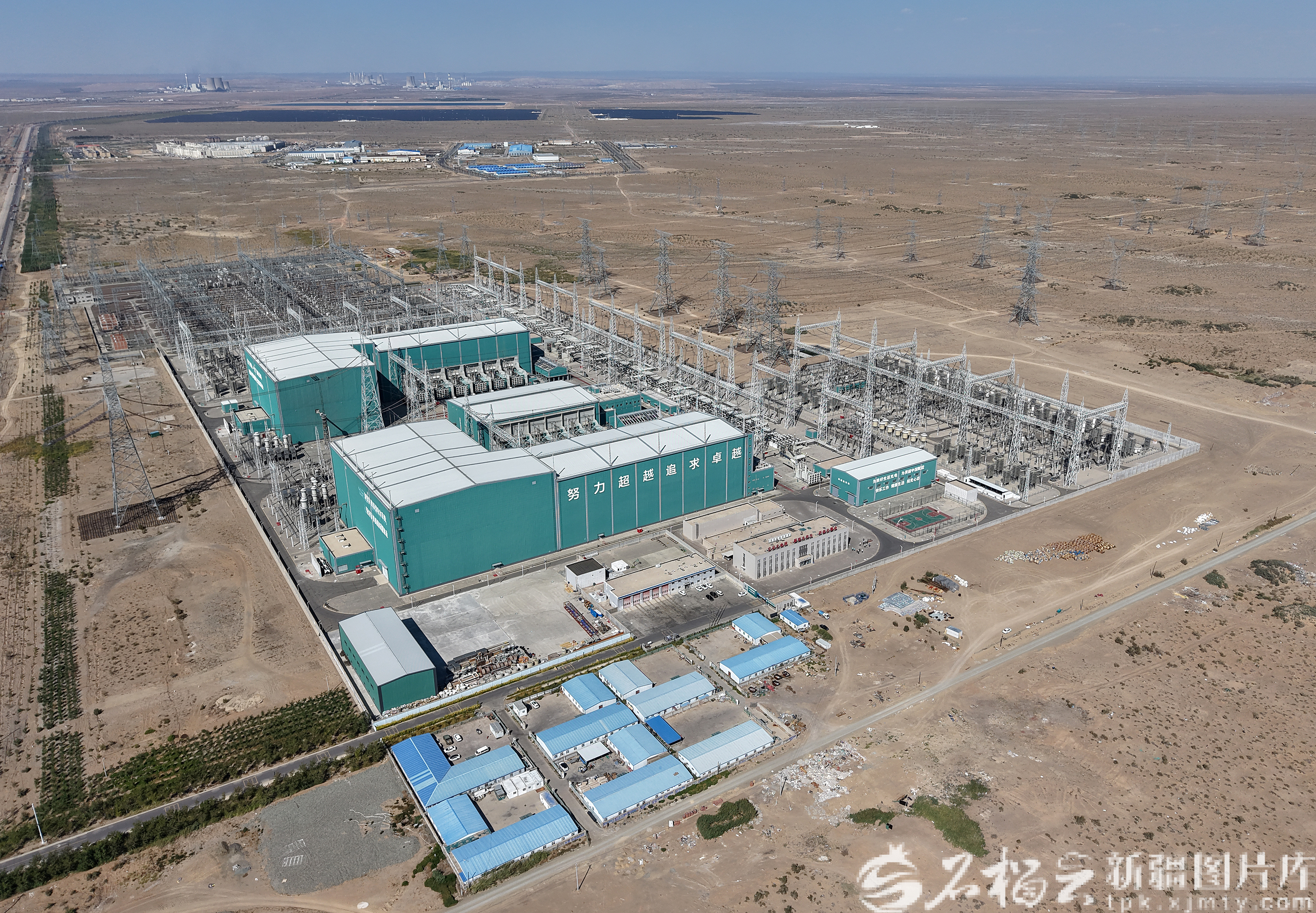 9月9日,俯瞰昌吉—古泉±1100千伏特高压直流输电工程昌吉换流站全景。