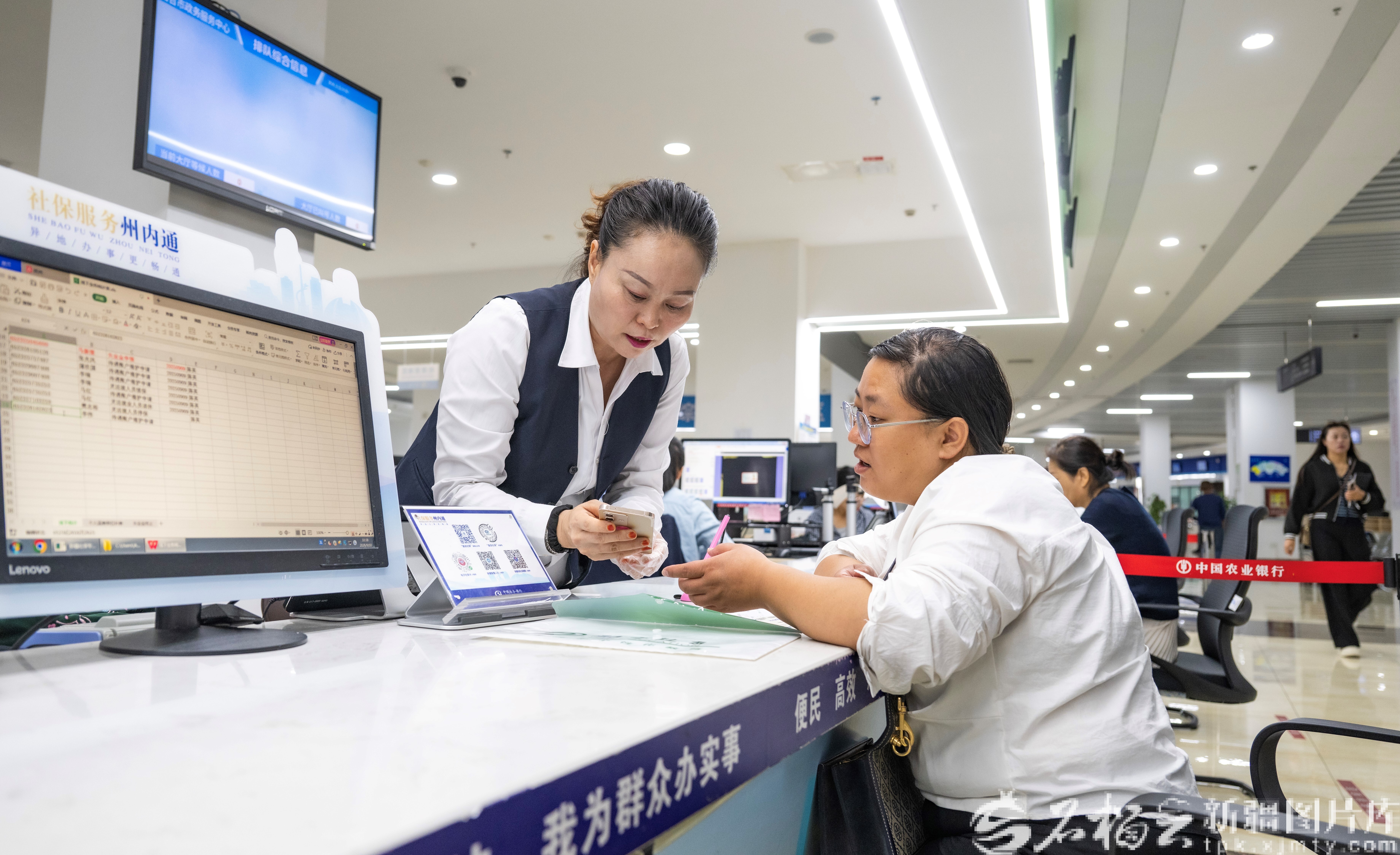 9月10日,昌吉政务服务中心办事大厅,工作人员指导市民办理社保业务。何龙摄