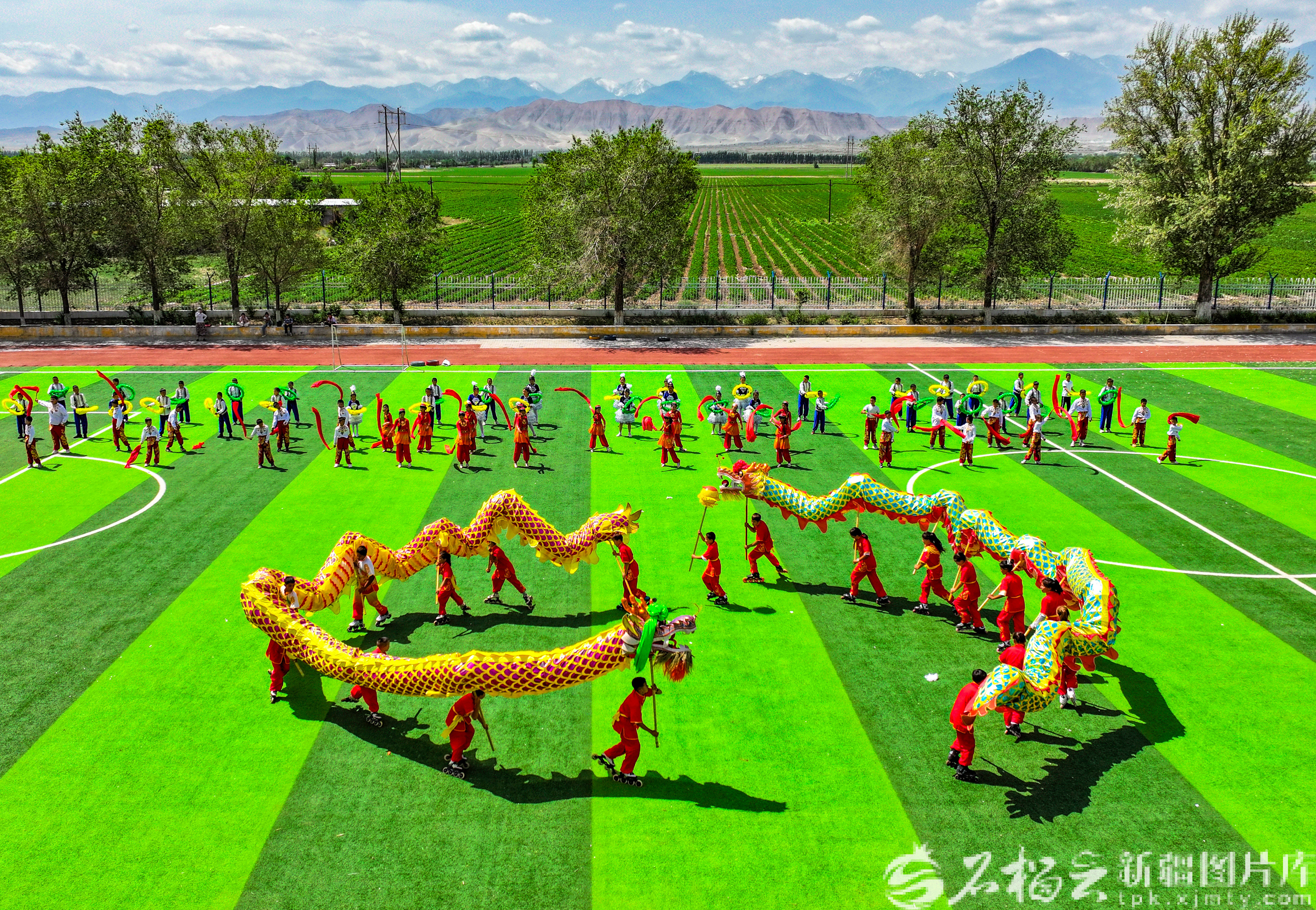 6月20日,吉木萨尔县老台乡小学操场上,该学校的轮滑舞龙队正在排练。何龙摄