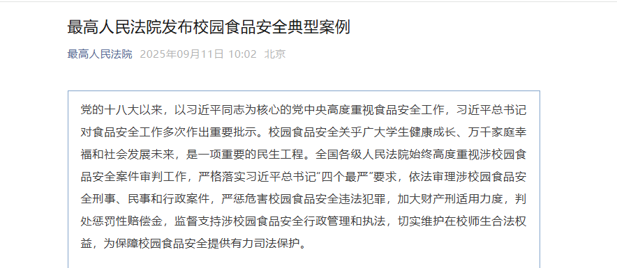 最高人民法院发布校园食品安全典型案例-尊龙凯时国际娱乐
