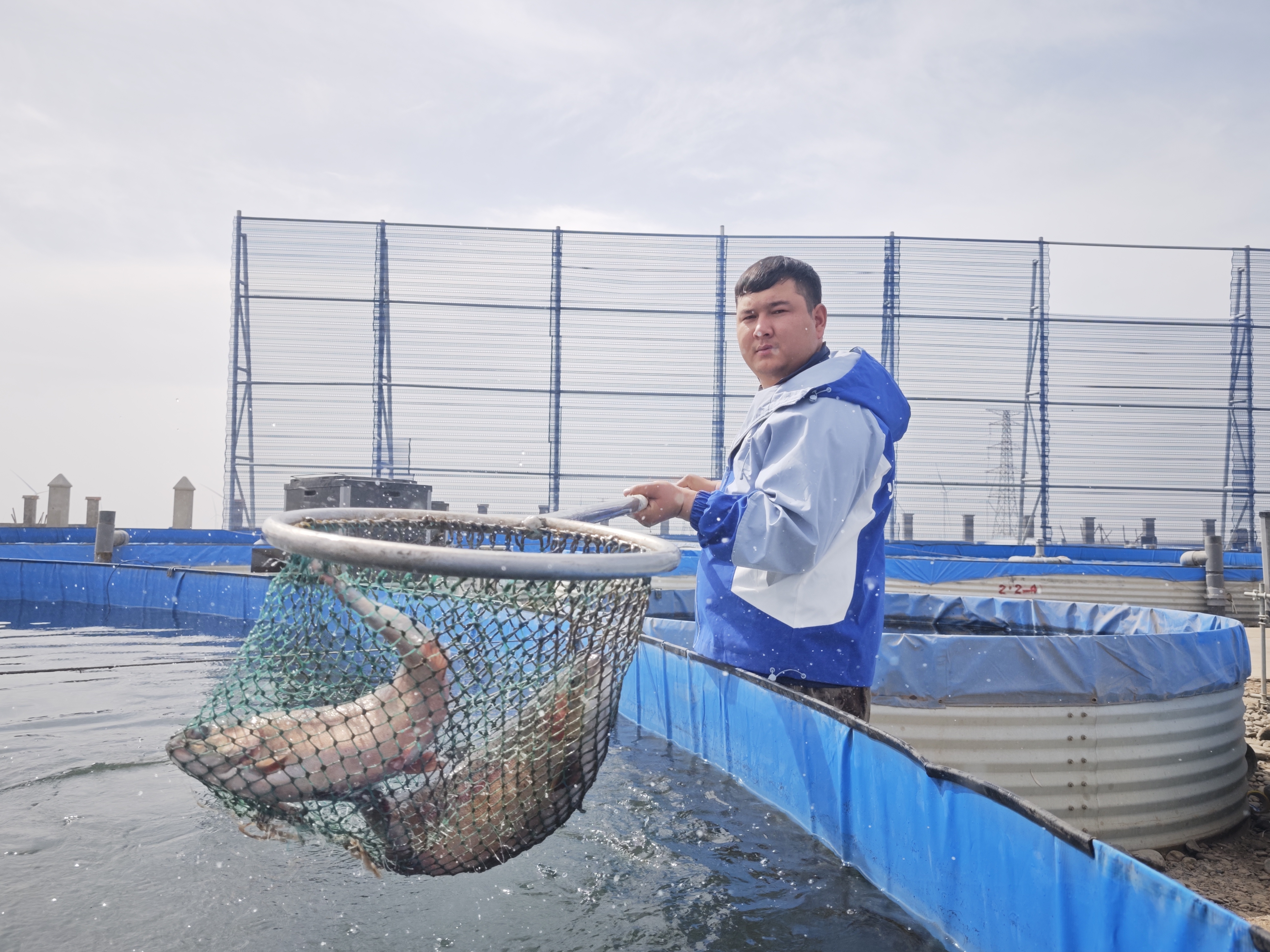 昌吉市六工镇的水产养殖基地喜获丰收的南美白对虾。昌吉州融媒体中心记者王薇 摄