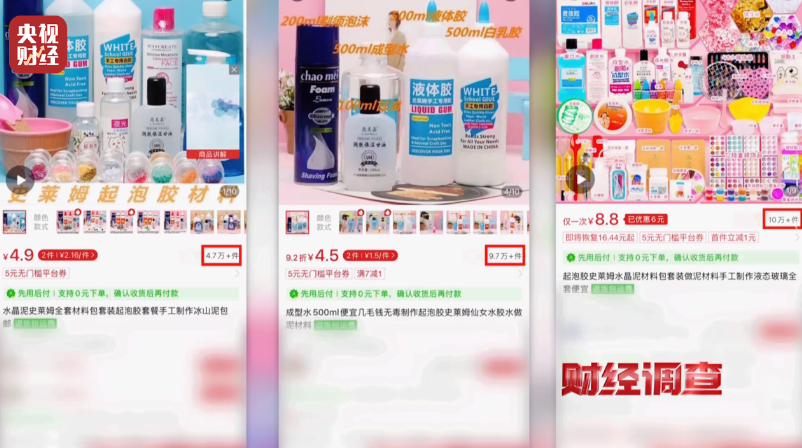 记者发现,在多个短视频平台和电商平台上,起泡胶、水晶泥等软泥玩具以及各种自制软泥套装的销量都很高,一家店铺的“水晶泥”销量就可达10万件以上。