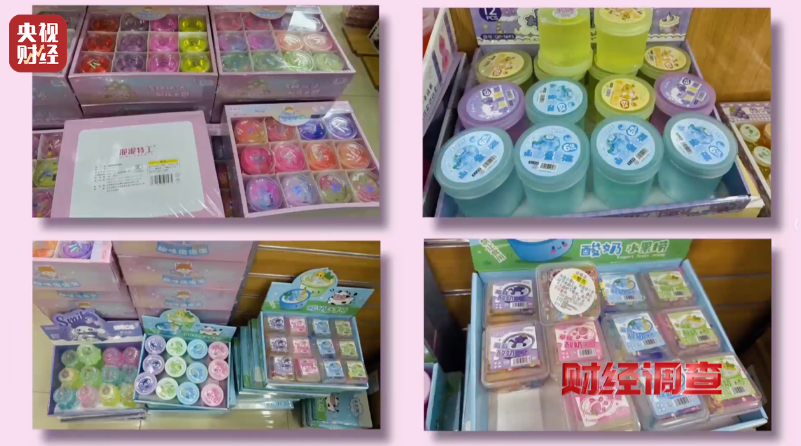 同时,记者在济南市、郑州市、临沂市等地的部分超市、文具店中也都看到了正在出售的“三无”软泥玩具。