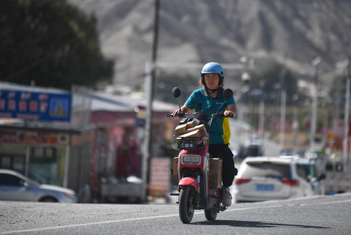 9月13日,从和静县巴伦台镇出发,沿g218线一路向西,翻越查汗努尔达坂后抵达那巴公路第七标段,现场一台沥青摊铺机正在摊铺沥青,3台压路机在后面来回碾压。