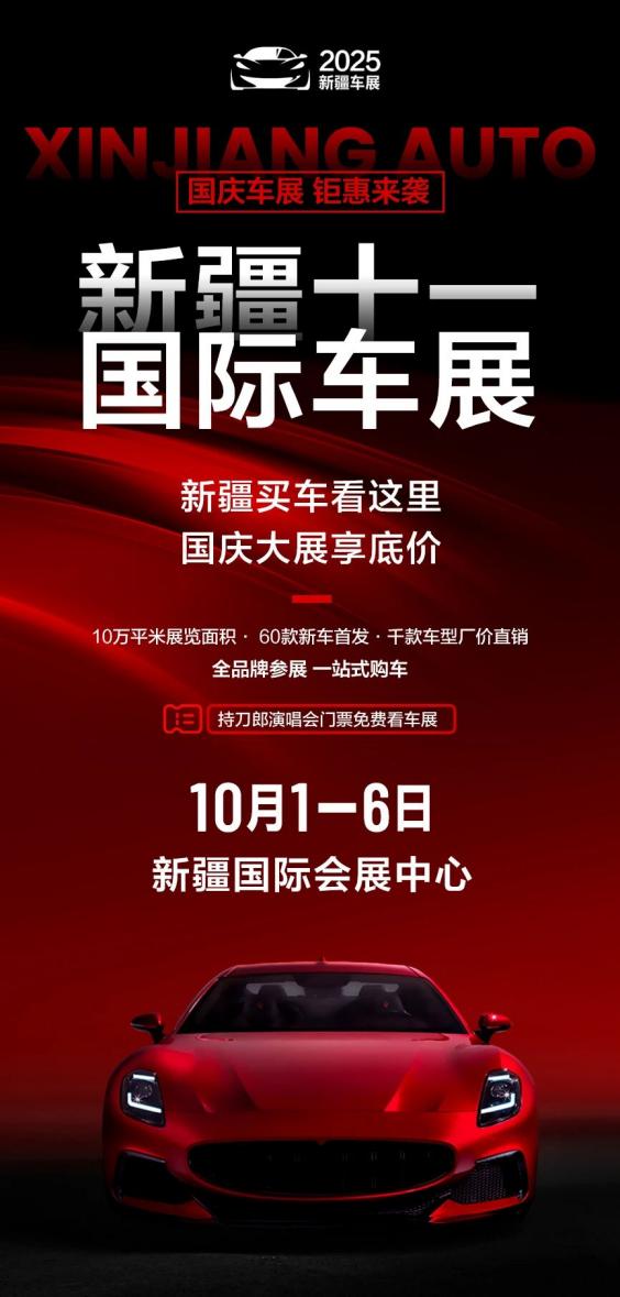 2025新疆十一国际车展,10月1日—6日,新疆国际会展中心,一场集结品牌、新车、钜惠与惊喜的汽车盛宴已整装待发。