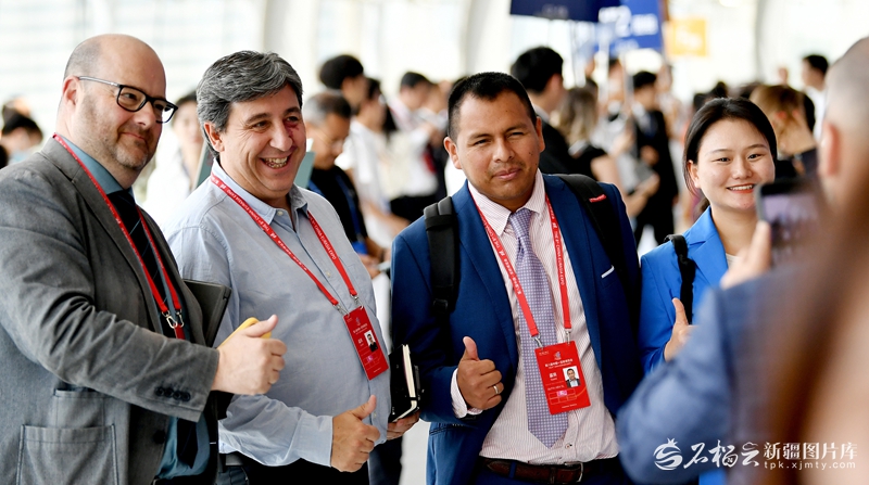 第八届中国-亚欧博览会开幕式结束后,中外嘉宾在场馆合影(2024年6月26日摄)。石榴云/新疆日报记者 邹懿摄