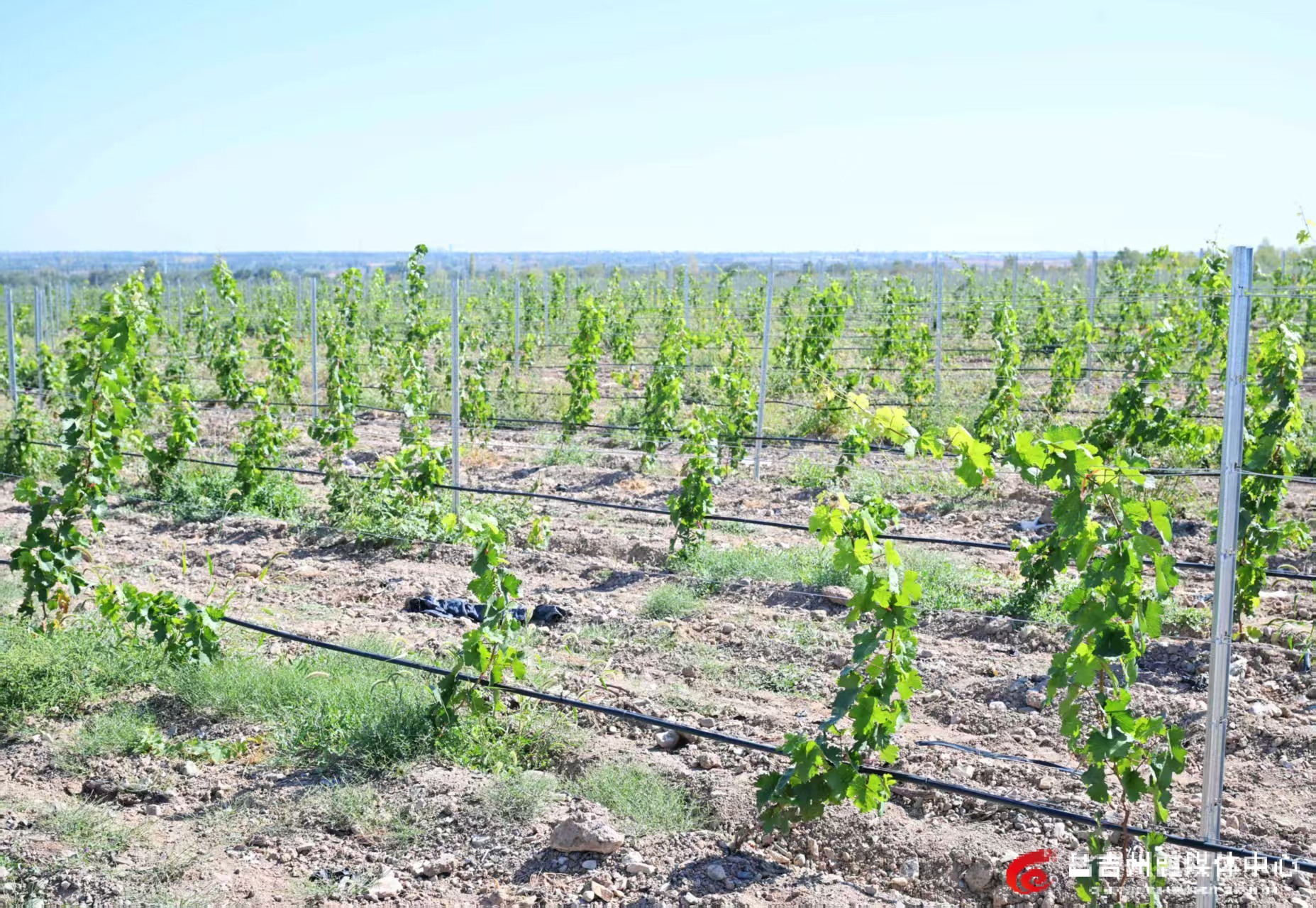 昌吉市印象戈壁葡萄酒庄200亩标准化葡萄种植示范园。记者何龙 摄