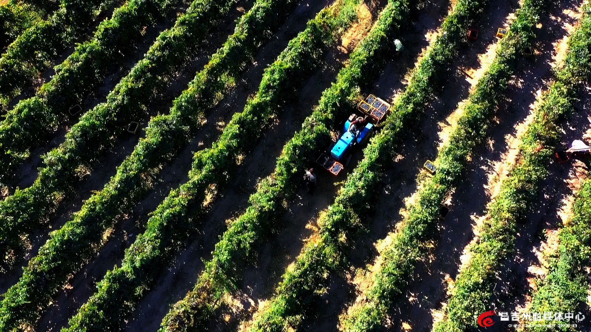 百余公里外的玛纳斯县,新疆天园农业科技有限责任公司酿酒葡萄基地葡萄挂满藤蔓,该公司经理王永辉正调度车辆,将新收的葡萄送往中信尼雅葡萄酒股份有限公司。