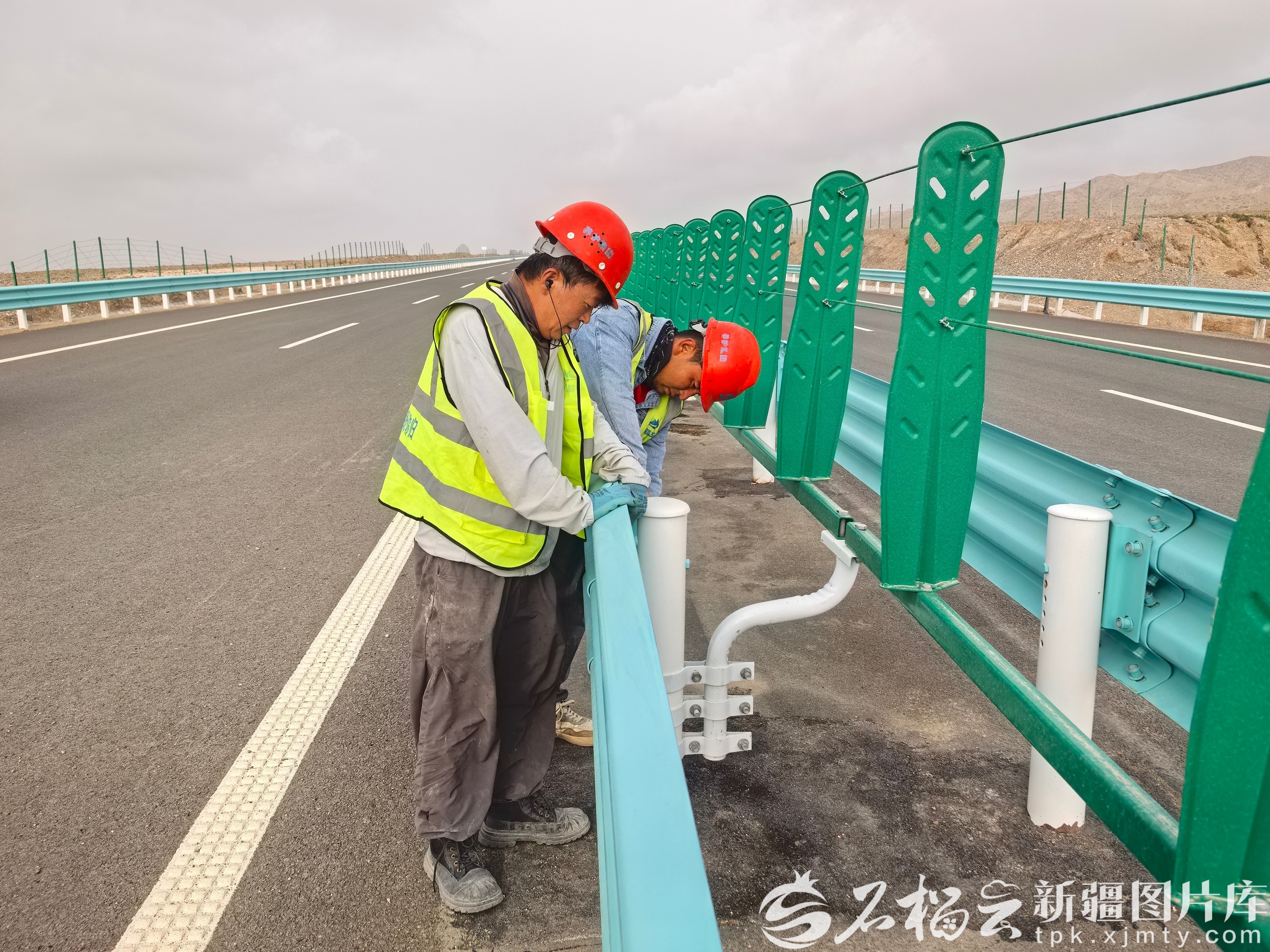 9月16日,施工人员在阿乌阿公路现场安装防护栏。邓阳 摄