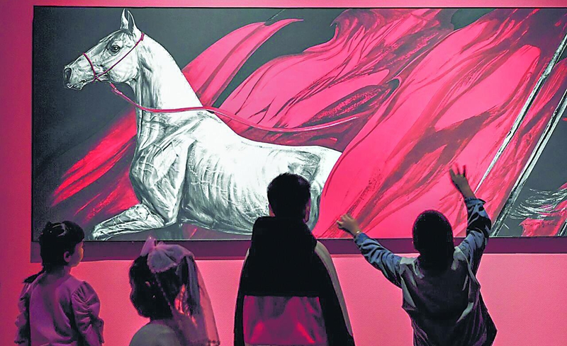 “和美共生——第三届中国新疆国际艺术双年展”在新疆美术馆开展,吸引众多市民前来参观(2023年2月18日摄)。天山网-新疆日报记者 汤永摄