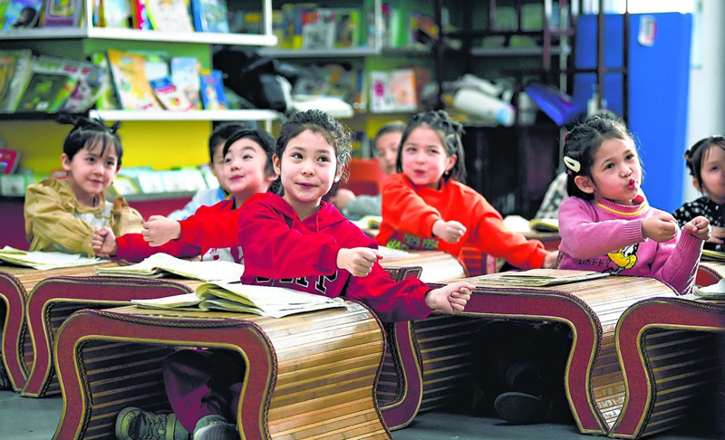 3月9日,乌鲁木齐市天山区二道桥街道固原巷社区的孩子们在社区国学课堂朗诵诗词。通过学习中华优秀传统文化,让中华民族共同体意识根植孩子们心灵深处。天山网-新疆日报记者 汤永摄