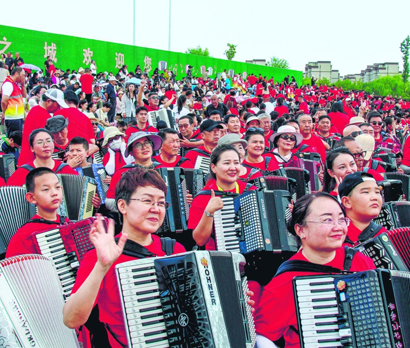 8月15日,“丝路明珠同心逐梦”2025新疆塔城第五届手风琴文化国际艺术节彩排现场。杨化光摄