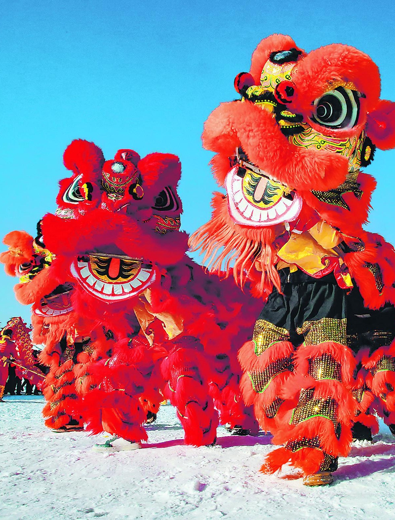 群众在叶城县七星岛景区表演舞狮(2023年12月30日摄)。天山网-新疆日报记者蔡增乐摄