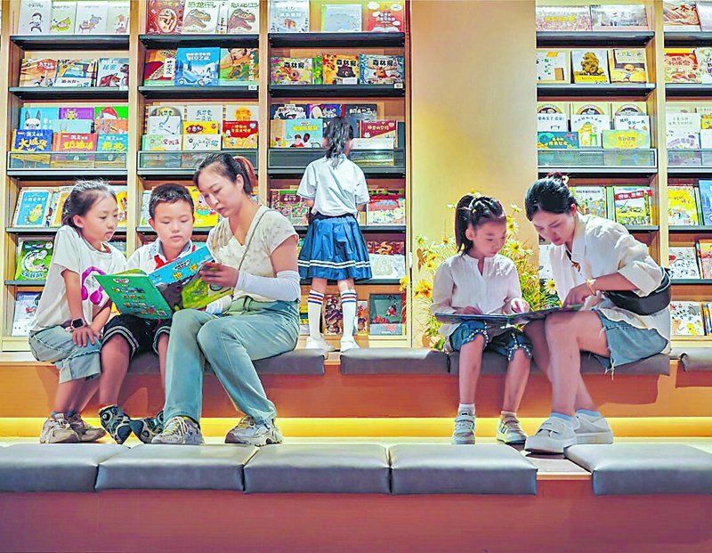 暑假期间,昌吉市各中小学学生走进书店、图书馆,以书为伴,在翰墨书香中度过充实的假期(2024年7月6日摄)。杨斌摄