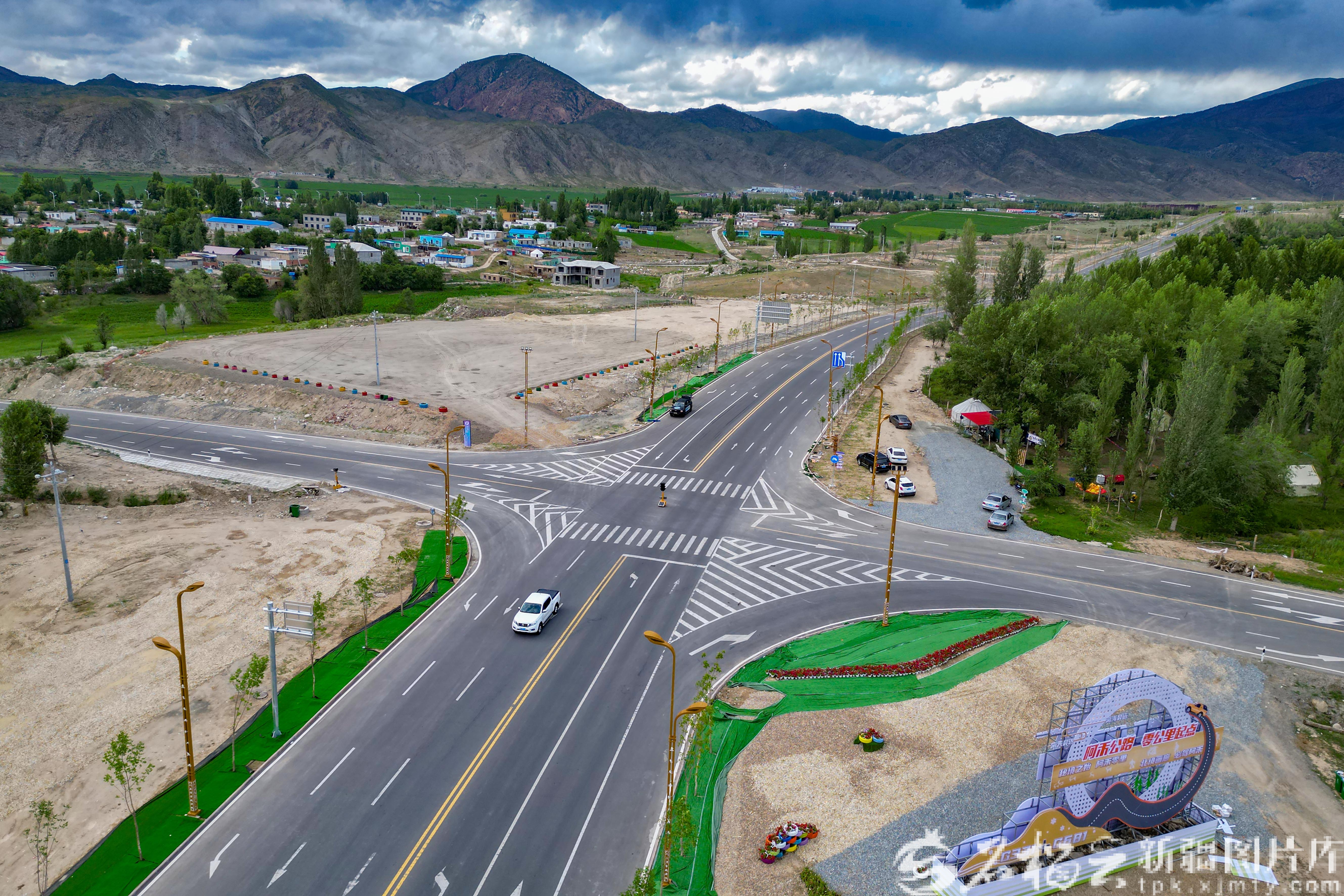 7月1日,在阿勒泰市拉斯特乡拍摄的阿禾公路起点。石榴云/新疆日报记者 蔡增乐摄