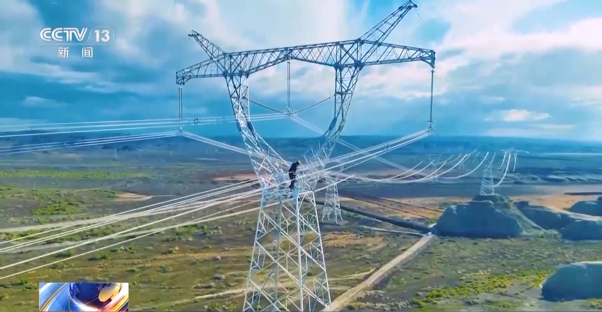 新疆送变电公司东疆运检分公司副班长 郭靖:相比以前我们拿着望远镜走路巡视,无人机巡检的优点是不受山区等环境的影响限制,巡视效率也比人工巡视快很多,同时它搭载的红外热成像仪和激光雷达等新设备,可以实现全方位、无死角的巡视作业。