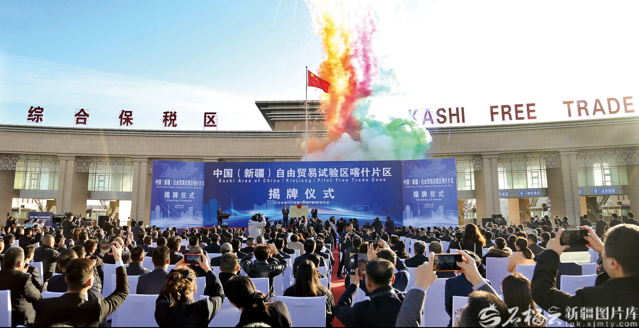 2023年11月11日,中国(新疆)自由贸易试验区喀什片区揭牌仪式现场。石榴云/新疆日报记者 约提克尔·尼加提摄
