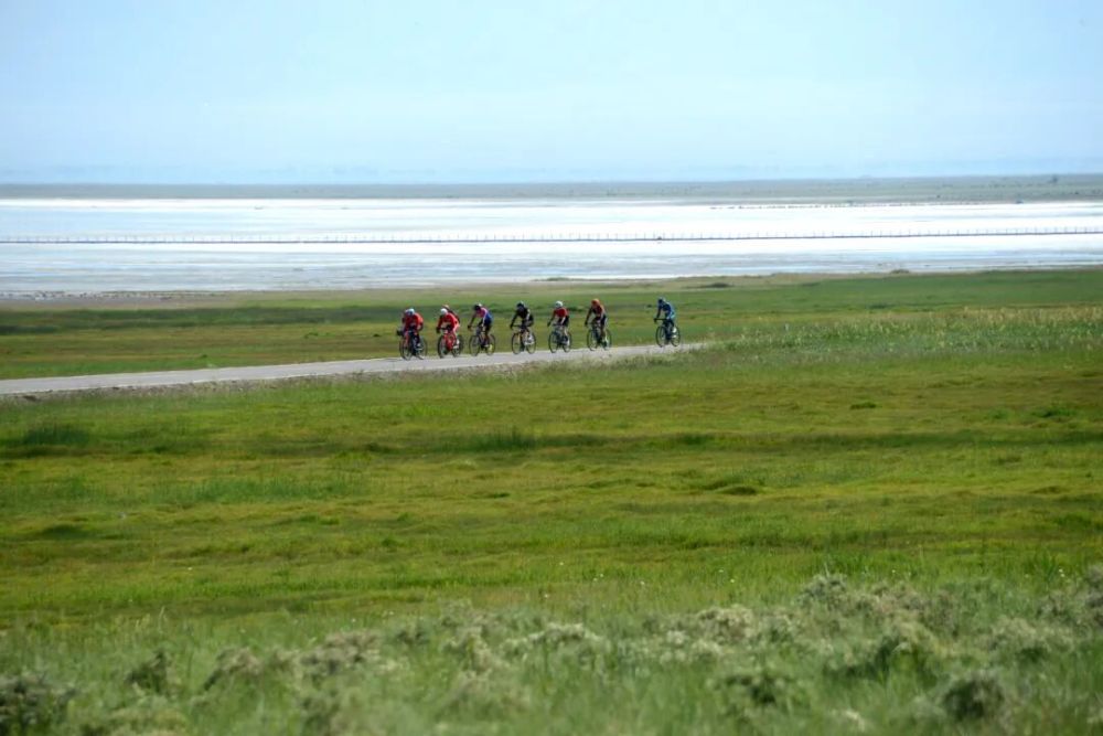人们在巴里坤环湖公路上骑行。张健刚 摄